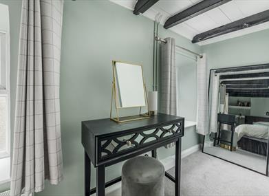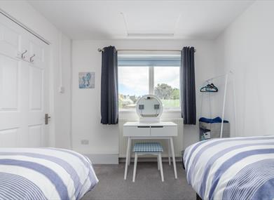 Bedroom: Twin beds, bedside cabinets, dressing table and hanging space