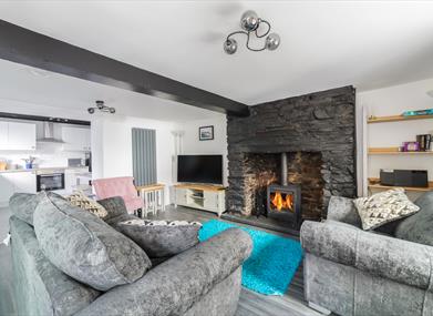 Lounge: Comfortable sofa and two chairs providing ample seating for 4, log burner and large TV. Please be cautious around the log burner with children when lit.