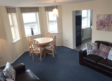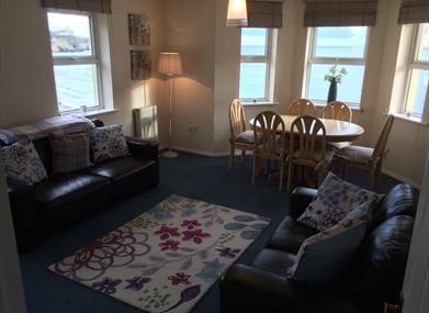 Lounge – bay and side windows with magnificent unrestricted views of the beach and Douglas bay, WiFi, TV, DVD, 2 leather sofa’s (one of which can convert to a double bed)