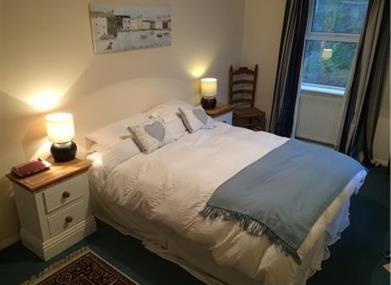 Main bedroom – double bed, bed side lamps, built in wardrobe, windows with views to rear and side, hairdryer