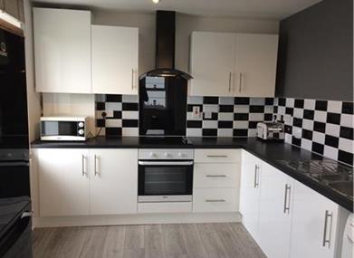 Kitchen – newly refurbished, electric hob, full sized oven, cooker hood/extractor, microwave, toaster, kettle, full sized fridge freezer, washer/dryer
