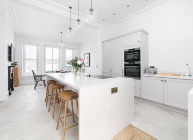 Featuring five stylish bedrooms that sleep eight people in total, guests will no doubt enjoy a stay of supreme comfort. Socialise in the ample space offered by the living room on the first floor, or gather around the island in the kitchen as you cook up some local cuisine!