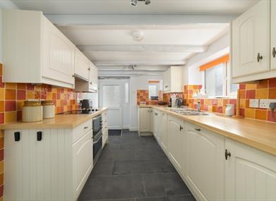 The living room has a magnificent Manx "Chiollagh" stone fireplace with wood burning stove, comfortable seating and a fold-out dining table seating up to four people. Kick back and relax on the chairs in the bay window of the living room which overlooks Port Erin bay and Bradda Head, often bustling with beachgoers in the summer months. The beach is a popular spot for dog walkers in the quieter months too! Baljean is pet friendly too, perfectly geared up to bring them with you as the property features a washroom with a basin around the side of the property.