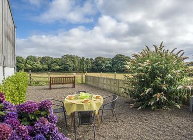 Sleeps 5. A one level, step free, 3 bed farmstay cottage with Gold Award, National Accessible Scheme M1 rating & free fibre WiFi. Fabulous views over open farmland towards the hills. 1 SK Double or twin with en suite and 1 Double, both with patio doors onto the garden. Also 1 Single plus family bathroom with bath & shower. Very spacious with private, enclosed garden area and parking for 2/3 cars. An Assistance dog welcome (no pets). Access to extensive gardens with summerhouse. NO SMOKING PERMITTED.