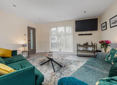 Dining & Living area: Dining table & four chairs, two sofas, coffee table and Smart TV