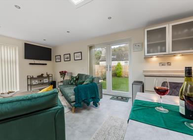 The property sleeps 4 people across 2 bedrooms and is immaculately presented with modern furnishings. Floor-to-ceiling windows let in plenty of natural light and there is access to the rear enclosed garden through French doors from the open-plan living area. There you can find a patio area featuring garden furniture and a BBQ to make the most of the summer sun!