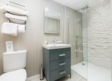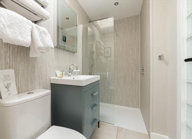 Ensuite: Walk-in shower, w.c. and basin with storage