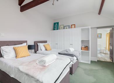 Bedroom 3: Twin beds, bedside cabinets, dressing table, wardrobe, chair and table