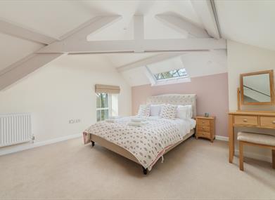 Bedroom 1: King size bed, bedside cabinets, dressing table and wardrobe.