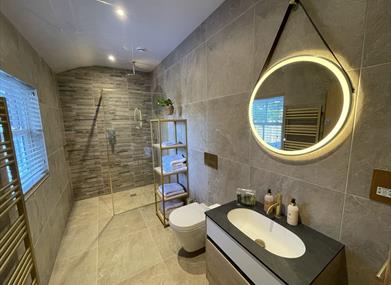 Your spa-style bathroom is a luxurious wet room with a waterfall shower, underfloor heating and soft, sumptuous towels. Complimentary, eco-friendly toiletries are included as standard.