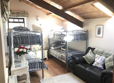 Scarlett Lodge features one large bedroom with two sets of bunk beds. It's perfect for a small group with in room tea/coffee making facilities, satellite TV, sofa and spacious en-suite bathroom with power shower.