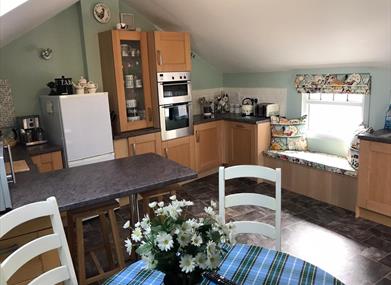 There are separate kitchen facilities for the sole use of our lodge guests, including a large screen tv, dining table, dishwasher, cooker, fridge freezer, microwave and bread maker. Both Scarlett Lodge and its kitchen have central heating, and all towels and bedding are included in the price of your stay.