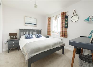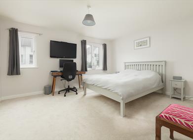Bedroom 3: Double bed, chest of drawers, fitted wardrobe and drawers, dressing table, TV