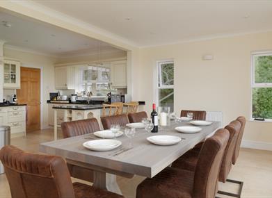 Kitchen/dining area: Oven, hob, microwave, toaster, kettle, dishwasher, fridge-freezer, dining room table with seating for 12