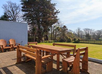 Outdoor area: Patio with outdoor seating and large secure garden