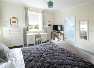 Bedroom 2 –Double Bed. Sleeps 2 persons. Enjoys views over the paddocks, countryside to the north. En-suite shower room.
