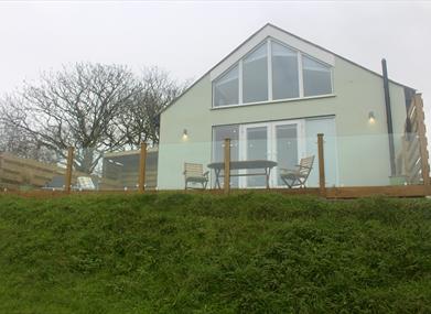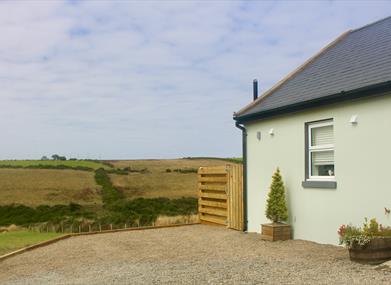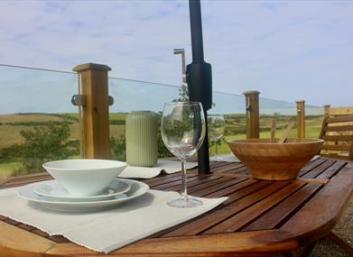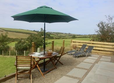 Enjoy the spectacular views over the fields of Cronk-Y-Voddy from your private terrace whilst bubbling away in the hot tub.