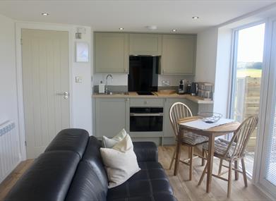 This accommodation is 29 sqm over two floors and sleeps two guests. Over looking a private field, the holiday let enjoys complete privacy from our main cottage which sits hidden from view and over 50 metres away.