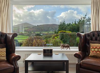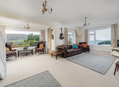 Living room: Two sofas, three chairs, TV, DVD player. Breathtaking views towards North Barrule.