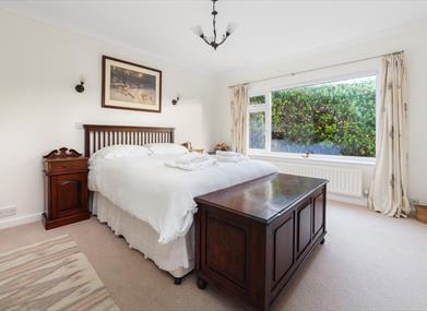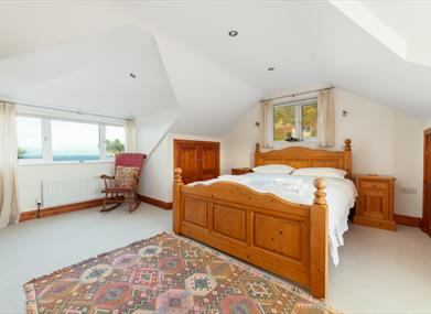 Bedroom 4: Master bedroom with king size bed, bedside tables, chest of drawers and ample hanging space on rails under the eves.
