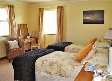 This lovely twin room has full sized twin beds which can zip and link to make a huge 6 foot bed.It is situated on the ground floor and has its own sparkling en-suite with luxurious fluffy towels, and robes. Heated towel rails and underfloor heating throughout the house make your stay as comfortable as possible