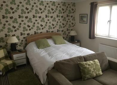Fendale offers four rooms in all. The main guest room is a large en-suite room looking south over the garden. It has a sitting area and the TV in this room has dedicated Sky top box. The double bed has a Tempur mattress to ensure a good night sleep. The second room, also en-suite, is of a similar size. The room is large enough to accomodate a single bed if required as a Family room. The third room is not en-suite but is let with a private bathroom facility. The fourth room is a single room but is large enough to accommodate two single beds. Ideal for children.