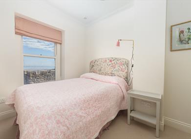 Bedroom 3: Double bed, bedside table, chest of drawers, hanging space.