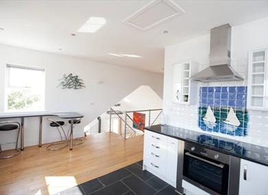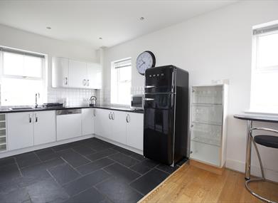 * Large fully-fitted kitchen with breakfast bar (The kitchen is fully equipped and includes oven, hob, microwave, dishwasher, fridge/freezer and Dolce Gusto coffee machine)