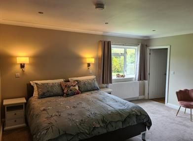 Large bedroom with super king bed, wardrobe, chest of drawers, USB sockets fitted with wall lights and reading lights.