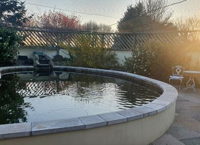 Guests can relax within the boundaries of the garden and well stocked fish pond seating area.