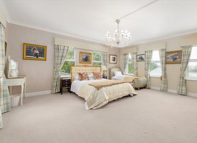Bedroom 1 (Bray Hill): Double bed, Single bed, bedside tables, wardrobe, TV, ensuite bathroom.