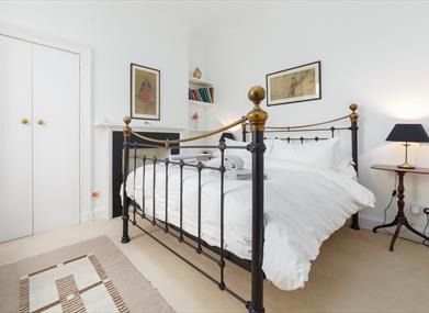 Bedroom 1: King sized bed, wardrobe, bedside tables and small bookshelf.