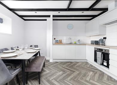 Kitchen & dining area: Well-equipped kitchen containing microwave, dishwasher, oven, toaster, kettle, Nespresso coffee machine and a dining table to seat 6 people.