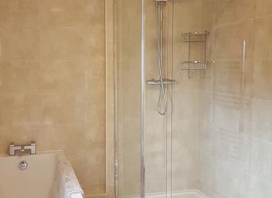 Bathroom: With bath, seperate large shower, sink and heated towel rail