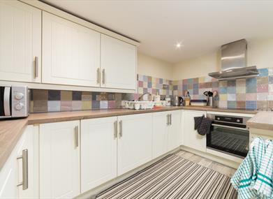 Split across two levels, Oie Vie Cottage has been designed with accessibility in mind, featuring a stairlift for ease of movement between floors and a shower chair for added convenience.