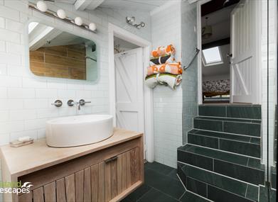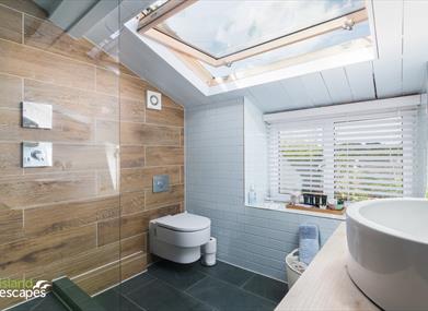 Bathroom: Two doors leading directly to both bedrooms, newly fitted with a large walk in shower