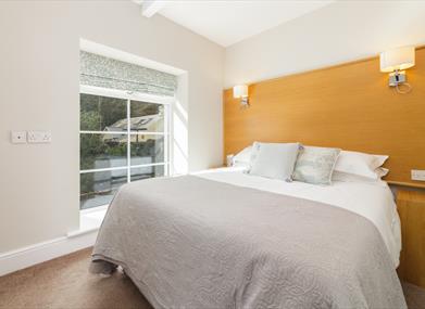 The Hayloft is a first floor apartment accessed by its own private staircase with two double rooms and a twin (which can also be configured as a king size bed on request) together with a spacious open plan living, dining and kitchen area. Benefiting from a balcony that overlooks the river and has stunning views along the valley and beyond, there are few places more perfect to sit and watch the sun go down. The open plan living area has fabulous exposed oak beams and windows on three sides offering panoramic views of the surrounding countryside. Private parking is available on the shared driveway with The Stables with additional on-street parking readily available if required.