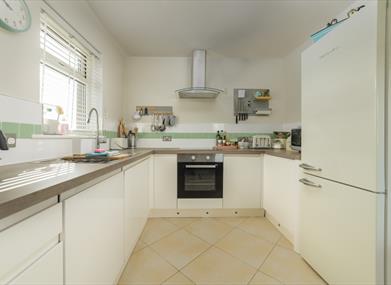 Kitchen/Dining area: Electric oven, electric hob, fridge, freezer, washing machine, dishwasher, microwave, dining table & four chairs