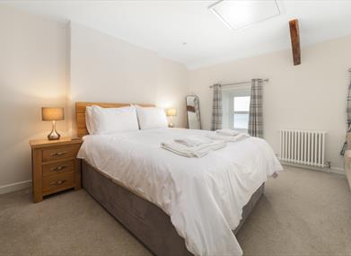 Upstairs there are two double-bedrooms with king size beds (one of which can also be set up as a twin room), and the bathroom which features a bath, shower, wash basin and WC.