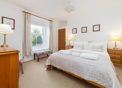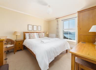 Bedroom 2: King size bed, bedside tables, chest of drawers, wardrobe, dressing table and beautiful sea views over Port Erin.
