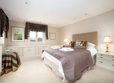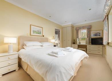 Bedroom 4: King size bed, bedside tables, wardrobe, chest of drawers, TV and dressing table.