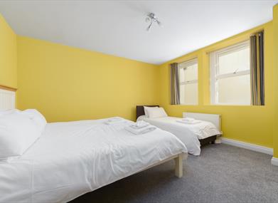 Bedroom 2: Superking size bed, single bed, bedside cabinets, dressing table and hanging space
