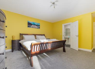 Bedroom 1: Superking size bed, single bed, bedside tables, dressing table and hanging space.