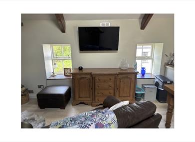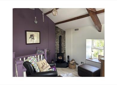 The lounge area has a log burner, which will be laid on arrival with unlimited kindling / logs available throughout your stay. There is an electric radiator should you not wish to light the fire. A Smart TV set up for Freesat / apps etc with free WiFi. There is a leather armchair, two seater leather settee and footstool, which contains a number of games.