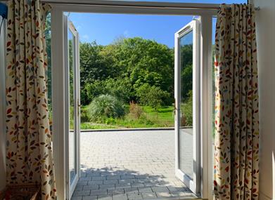 The cottage is on two floors. Downstairs there is a bedroom with double (Super King size 6'x6'6") or twin beds (optional) with an en suite wet room (shower, basin, WC). In addition, there is an open plan living room with kitchen (induction hob, electric oven, sink, microwave, toaster, fridge), twin sofa-beds, smart tv and an additional separate WC. This leads through glass doors onto a paved sun terrace with barbecue facilities. The downstairs is on a single level and suitable for disabled access (awaiting inspection & approval).. The ground floor has underfloor heating throughout.