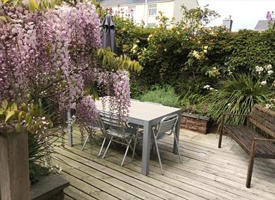 Behind the house the walled, and decked, courtyard garden faces South. It's completely private and is enclosed and secure for children. Steps lead up to the garage whose main door opens onto the adjacent lane. The property also has central heating, colour TV, freezer, washing machine and tumble drier. All linen, towels and utilities are included.