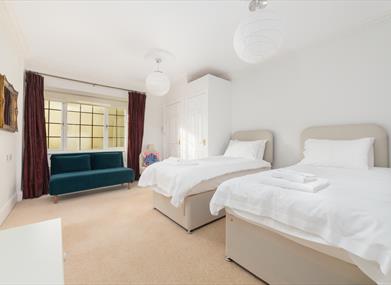 Bedroom 3: King size bed, Single bed, wardrobe, chest of drawers, chair and bedside cabinets