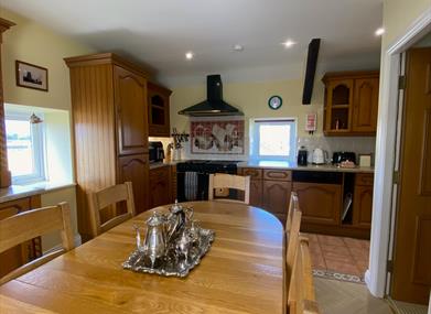 After passing the second mezzanine, where a guest toilet is conveniently located, you'll reach the Second Floor. Here, a front-facing balcony welcomes you. The Lounge is accessible through a pair of glass-paneled wooden doors. This room also features a second balcony with views to the south of the island, complemented by three additional windows that flood the space with natural light and offer stunning panoramic vistas. The ceiling is uniquely decorated with an original windmill hoist wheel, now creatively repurposed as a downlight panel. The Lounge is furnished with a 3-seater sofa and five armchairs, comfortably seating up to eight people. For entertainment, a smart TV with Chromecast is available for the whole family to enjoy.