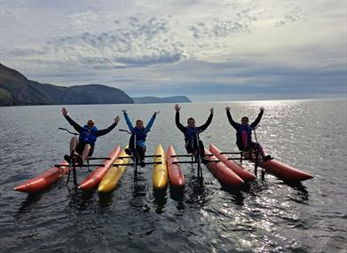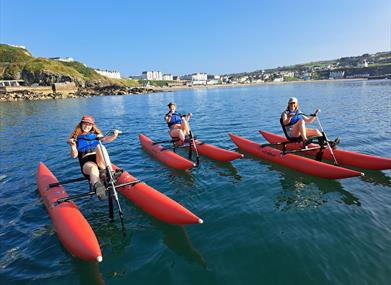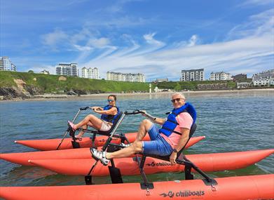 Jump aboard our easy to ride, high performance, pedal powered Chiliboats. Chiliboats are super fun bicycles with stable catamaran pontoons that float on the water so you can cycle on the sea. Bring your family and friends to experience this unique new water sport activity on the Isle of Man.