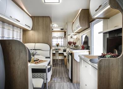 Our top of the range AutoRoller 746 has 2 king size beds and 1 small double so will very comfortably sleep 5 adults (or 6 at a squeeze)!